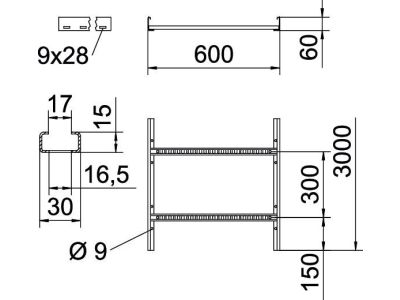 Kopėčios kabelinės 60x600 cinkuotos LCIS 660 3 FS [3m] - OBO BETTERMANN