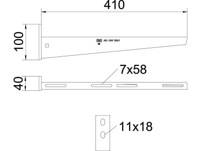 Laikiklis sieninis 410mm padidinto pagrindo karštai cinkuotas AW 15 41 FT - OBO BETTERMANN
