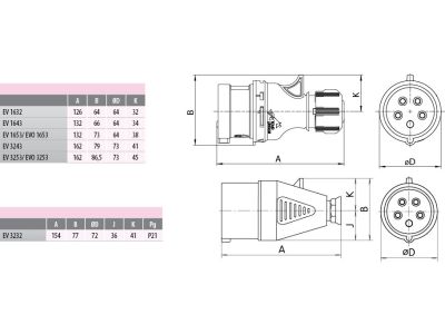 Kištukas CEE a/k 3P 16A 230V IP44 EV 1632 - ETI