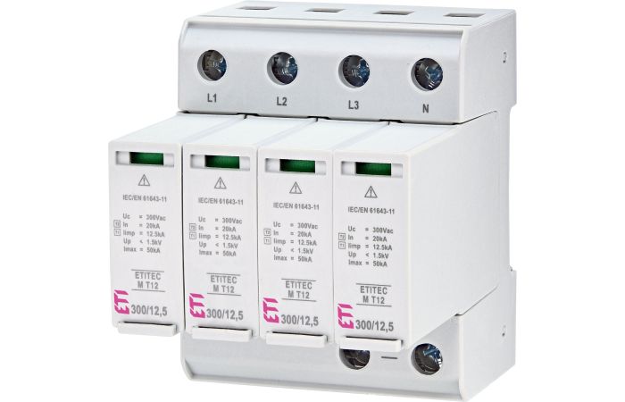 Apsauga viršįtampių 4P B+C+D 12.5kA 1+2+3 tipo ETITEC ML T123 300/12.5 4+0 - ETI