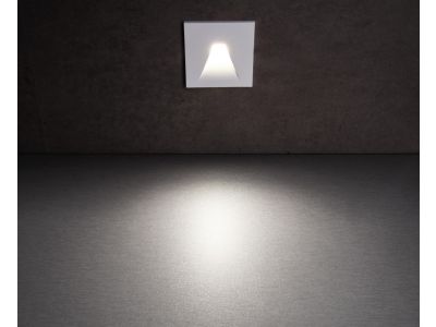 Dangtelis šviestuvui 75x75mm į sieną baltos spalvos su trapecijos formos skyle ALWAID 2 - DEKO LIGHT