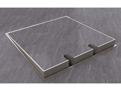 Dėžutė grindinė su nerūdijančio plieno dangčiu su įgilinimu 15mm 2xSCHUKO 150x150mm H90-120mm - BODENSTECKDOSEN SYSTEMTECHNIK