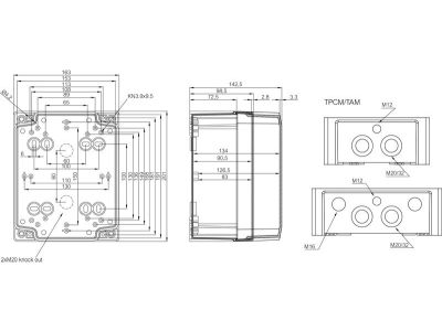 Dėžutė v/t [201x163x98] IP65 tuščia su vyriais skaidrus dangtelis TPC201610T - FIBOX