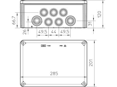 Dėžutė v/t [285x201x120] IP66 pilka atspari UV IP66 T350 - OBO BETTERMANN