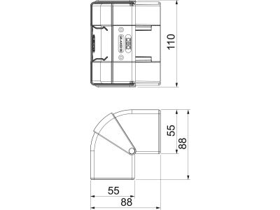 Išorinis kampas paslankus 110x88x88 Polikarbonatas/akrilnitrilo-butadieno-stirenas aliuminio GK-AH53100AL - OBO BETTERMANN (pavadinimas tikslinamas)