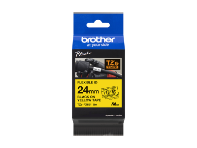 Juostelė spausdintuvui 24mm juoda ant geltono itin lanksti, laminuota [8m] - BROTHER