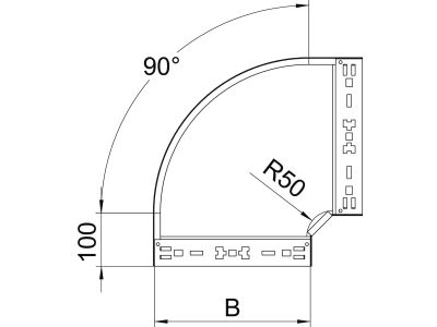 Kampas 90 laipsnių loveliui 110x500mm karštai cinkuotas RBM 90 150 FT - OBO BETTERMANN