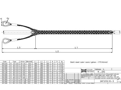 Kojinė kabelinė su 2 kilpom D110-130mm susirišanti L1500/1850mm 104.7kN K130/2G - VETTER