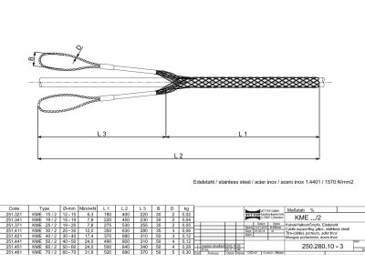 Kojinė kabelinė su 2 kilpom D25-30mm L350/630mm 12kN nerūdijančio plieno KME 30/2 - VETTER