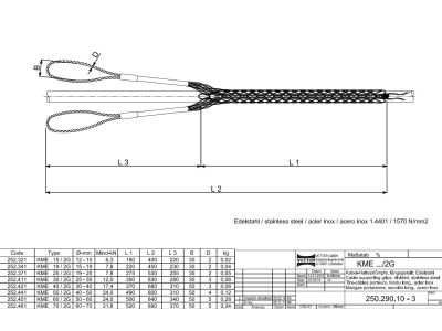 Kojinė kabelinė su 2 kilpom D60-70mm susirišanti L520/890mm 31.8kN nerūdijančio plieno KME 70/2G - VETTER