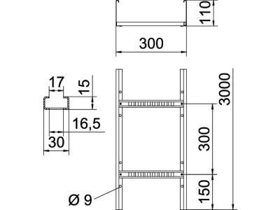 Kopėčios kabelinės 110x300 cinkuotos LG 113 VS 3 FS [3m] - OBO BETTERMANN