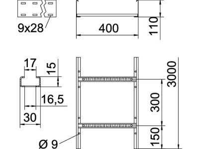 Kopėčios kabelinės 110x400 karštai cinkuotos LCIS 1140 6 FT [6m] - OBO BETTERMANN