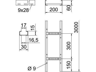 Kopėčios kabelinės 60x200 cinkuotos LCIS 620 3 FS [3m] - OBO BETTERMANN