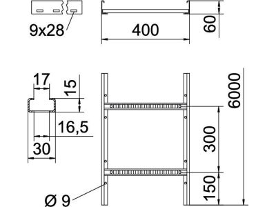 Kopėčios kabelinės 60x400 karštai cinkuotos LCIS 640 6 FT [6m] - OBO BETTERMANN