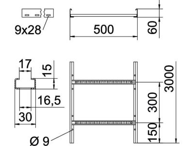 Kopėčios kabelinės 60x500 cinkuotos LCIS 650 3 FS [3m] - OBO BETTERMANN