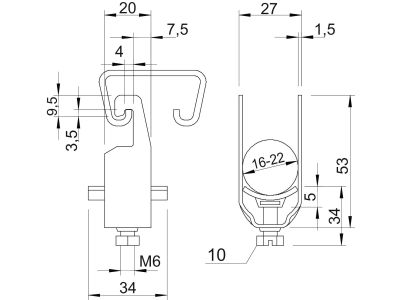 Laikiklis kabeliui Metalinis 16-22mm karštai cinkuotas 2056U 22 FT - OBO BETTERMANN