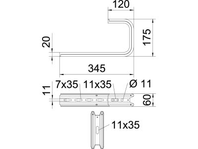 Laikiklis loveliui L-345mm karštai cinkuotas TPD 345 FT - OBO BETTERMANN
