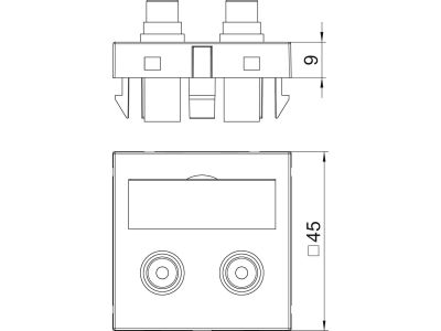 Lizdas audio dvigubas kanalui plokščias Rapid 45 RAL9010 MTG-2R F RW1 - OBO BETTERMANN