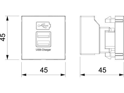 Lizdas p/t dvigubas USB A 2.1/1.05mA Rapid 45/80 be halogenų pilkas RAL7021 MTG-2UC2.1 SWGR1 - OBO BETTERMANN