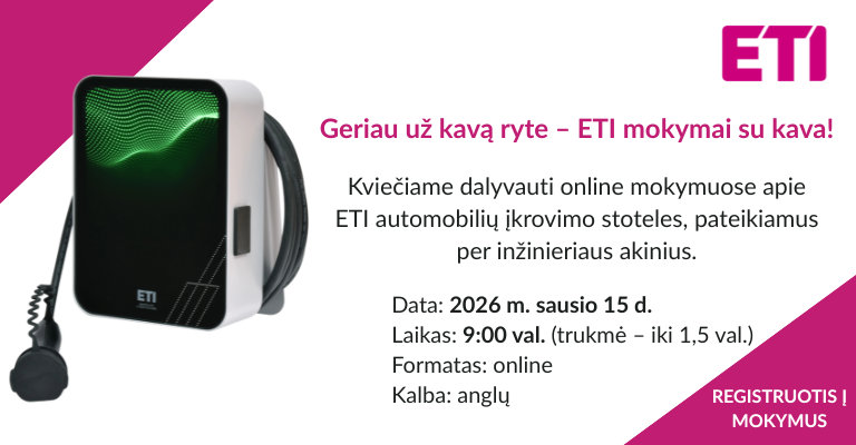 Kviečiame Jus dalyvauti mokymuose apie ETI automobilių įkrovimo stoteles, pateikiamus per inžinieriaus akinius.