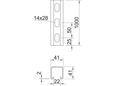 Profilis C formos 41x41 nerūdijančio plieno MSL4141PP1000A2 [1m] - OBO BETTERMANN
