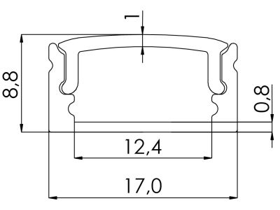 Profilis LED juostai v/t aliumininis 17x8.8 L-3m juodos spalvos su dangčiu galiniais dangteliais ir tvirtinimo laikikliais S1709 BLACK 3m - NORTHCLIFFE