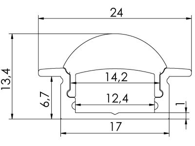 Profilis LED juostai į/l aliumininis 24x13.4 L-2m juodos spalvos su dangčiu galiniais dangteliais ir tvirtinimo laikikliais O2413 BLACK 2m - NORTHCLIFFE