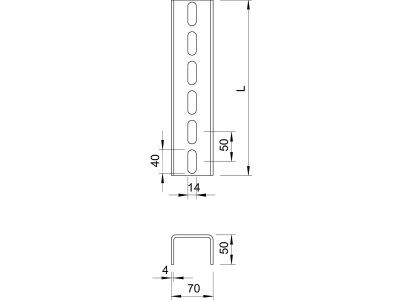 Profilis U-formos 70x50 L-0.4m karštai cinkuotas US 7 40 FT - OBO BETTERMANN