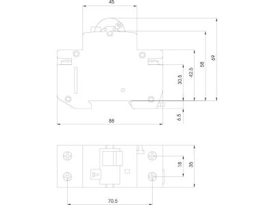 Relė srovės nuotėkio RCBO 2P 10A C 30mA A-tipas su automatu 10kA KZS-2M A C10/0.03 - ETI