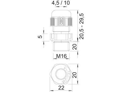 - Tinka kabelių skersmeniui 4.5 - 10 mm