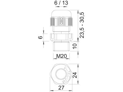 - Tinka kabelių skersmeniui 6 - 13 mm