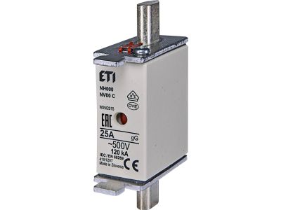 Saugiklis 25A 120kA 500V NH000 WT-00C/GG KOMBI - ETI