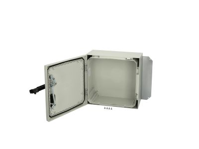 Spinta v/t [400x400x210] IP66 plastikinė su montažine plokšte tuščia ir rankena 2 užraktų pilkos spalvos ARCA 404021S - FIBOX