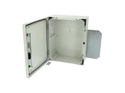 Spinta v/t [500x400x210] IP66 plastikinė su montažine plokšte tuščia ir rankena 2 užraktų pilkos spalvos ARCA 504021S - FIBOX