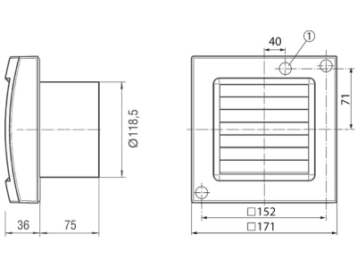 Ventiliatorius 120mm su žaliuzėmis ir jungikliu su virvute 180 m3/val 36dB(A) 19W IP23 ECA 120 KP- MAICO