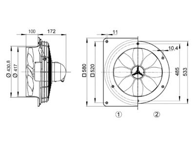 Ventiliatorius sieninis 400mm 2740m3/val. 68dB(A) 400V 95W IP64 DZQ 40/6 B Ex e - MAICO