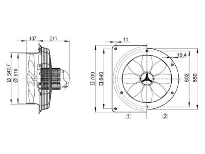 Ventiliatorius sieninis 500mm 4370/8890m3/val. 65/82dB(A) 400V 140/695W IP55 DZQ 50/84 B - MAICO
