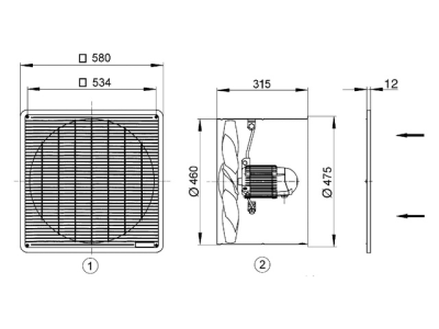 Ventiliatorius sieninis į/l 450mm 6045m3/val. 85dB(A) 400V 455W IP55 DZF 45/4 B - MAICO